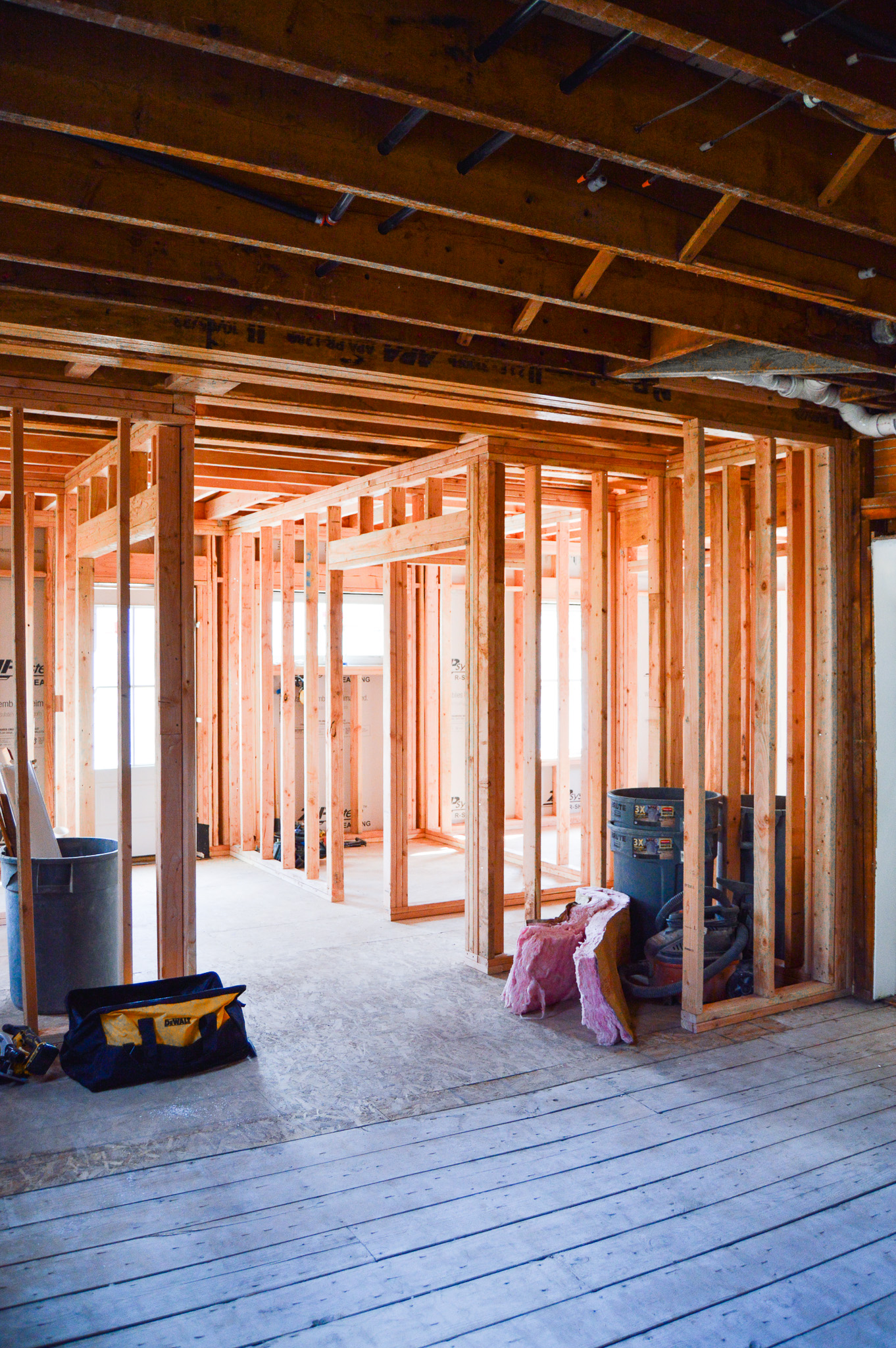 You can see here all the new framing was the new section we built off the original home, and the room around the corner is the new bathroom build.